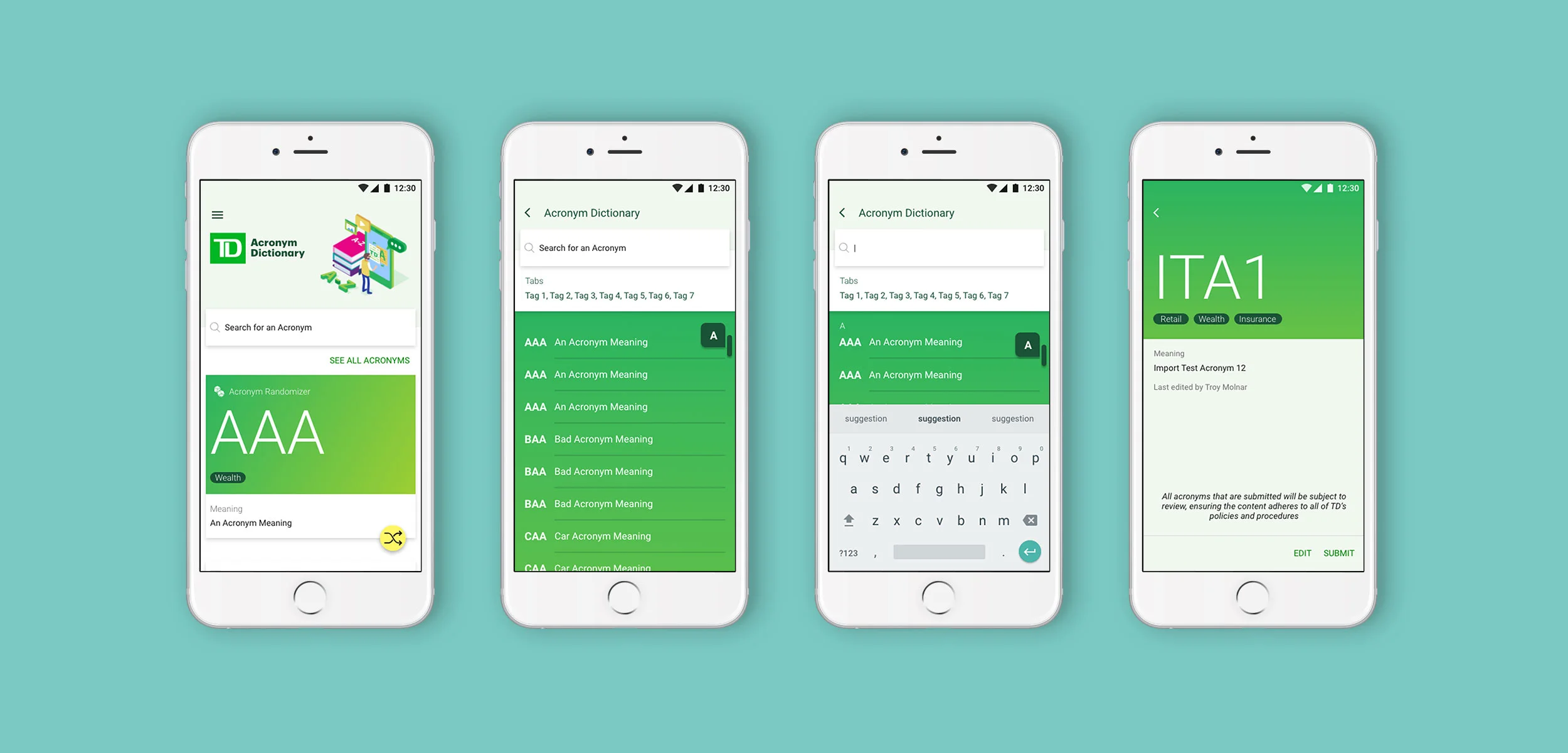 Redefined and implemented a refreshed TD apps design system for the Acronym Dictionary.
